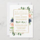 Modern Elegant Watercolor Eucalyptus Greenery Pink Roses Dusty Blue Roses Gold Frame Wedding Invitation - Photo Back