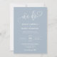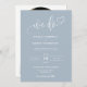 This invitation features an elegant "we do" calligraphy and simple sans serif typography font with an arch shape photo and QR code in a dusty blue background. The simplicity and clean design of this invitation works well with all wedding themes and definitely a great addition to your wedding.