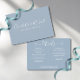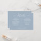 An elegant wedding details information enclosure card personalised with your special details set in stylish typography and your names and wedding date on the reverse on a dusty blue background. You can customise the background to your favourite wedding theme colour. Designed by Thisisnotme©