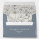 Vintage, elegant, modern floral dusty blue wedding 5x7 envelope with wildflower lace inside, return address and monogram at the top cover.