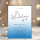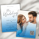 This modern, minimalistic wedding invitation features an elegant script front. It plays with the simplicity of a black and white typography design, adding just a hint of dusty blue colour. In the back of the invitation you can add your wedding website information as well as a QR code for your guests to scan. It's the perfect choice for couples who appreciate clean and modern elegance.