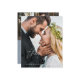 Budget Wedding Handwritten Thank You Cards that have a photo on the front and back. The Thank you cards contain a modern white and Black hand lettered cursive script typography that are elegant, simple and modern to use after you minimalist simple wedding day celebration.