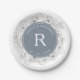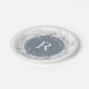 Elevate your wedding reception with our vintage-inspired dusty blue paper plates, exuding elegance and botanical charm. Each plate features a delicate monogram and intricate gilded silver floral lace, adding a touch of timeless sophistication to your table settings. Embrace the beauty of boho elegance with these exquisite plates, perfect for serving your guests with style. Let these paper plates become a memorable part of your wedding decor, reflecting the romance and grace of your special day.