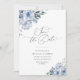 dusty blue floral script save the date wedding card. The text, image and colours can be edited.