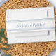 Complete your wedding invitation suites in style with our modern, minimalist dusty blue and white belly bands. Design features a double frame border in dusty blue on a crisp white background. Personalise wedding design with your first names in dusty blue script.