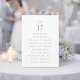 The graceful script “Table” paired with a refined serif number and neatly aligned guest names creates a clean, elevated aesthetic that complements candlelight and floral centerpieces.