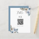 Elegant dusty blue floral wedding table number and with QR code for wedding menu.