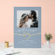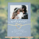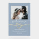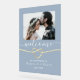 Welcome guests with grace and style using our minimalist dusty blue acrylic wedding sign. Adorned with a photo of the couple, a romantic gold rope heart, and trendy handwritten script, it embodies modern elegance and personal charm.