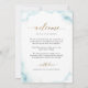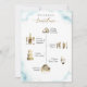 Welcome your guests with this gorgeous card with elegant timeline on the front and welcoming message on the back. Timeline with watercolor icons in beautiful golden hues. Both front and back with delicate dusty blue watercolor stains with dainty gold speckles. Modern hand written calligraphy details in gold. Ability to "grab and move" timeline icon images to different order to suit your event by selecting customise further.