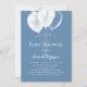 Dusty blue background, decorated with white balloons. Personalise and add a name and party details.