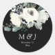 Dusty blue & white botanical floral round monogram sticker. Give your wedding invitations that special touch with this floral, dusty blue & white / ivory round sticker. w/ grey