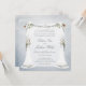 A chuppah wedding invitation featuring a dusty blue ombre background with a pure white chuppah with twinkle fairy lights, pine, eucalyptus and olive branch boughs with white anemones.