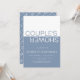 This wedding shower invitation presents a modern and playful aesthetic with its combination of dusty blue and white color blocks. The top of the invite is white while the bottom has a dusty blue shade. The word 'COUPLE'S' is inscribed in blue on the white block while the word 'SHOWER' is written in white on the dusty blue block in an upside down fashion. The minimalist look is further enhanced by the use of a simple font. On the other side, the couple's initials in white are gracefully placed on a dusty blue background, making this invitation complete.