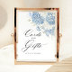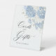 Create a clean, modern Cards & Gifts wedding sign with soft dusty blue & white hydrangea watercolor florals. This pedestal sign helps guests instantly find your gift & card area—perfect for welcome table or reception display setups and planner-ready timelines.