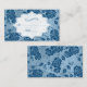 This stylish and modern powder blue, blue, and white vintage floral damask wedding placecard has large dark blue peony or rose type flowers on a grungy damask background with a small calligraphic scroll ornament for extra oomph. It matches the wedding invitation shown below. If you require any changes, please email niteowlstudio@gmail.com.