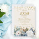 Elegant dusty blue and white roses, floral, and greenery women's 100th birthday party invitation with gold glitter. This invitation is printed on both sides. Contact me for assistance with your customisations or to request additional matching or coordinating Zazzle products for your party.