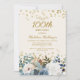 Dusty Blue White Floral Gold 100th Birthday Invitation