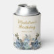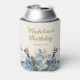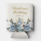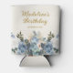 Dusty Blue White Floral Gold Birthday Name Can Cooler