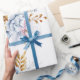 Dusty Blue White Gold Floral Wedding Wrapping Paper