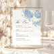 Dusty Blue White Hydrangea Wedding Bar Menu Pedestal Sign