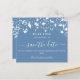 A modern and elegant Save the Date for a wedding. A dusty blue background decorated with white stars. Personalise and add a date and names. The text: Save the Date is written with a large trendy hand lettered style script.