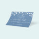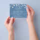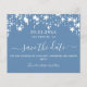 A modern and elegant Save the Date for a wedding. A dusty blue background decorated with white stars. Personalize and add a date and names. The text: Save the Date is written with a large trendy hand lettered style script.