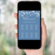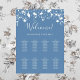 A trendy dusty blue background. Decorated with white stars. Personalise and add the name of the bride and groom, add your guests names. White text.