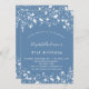 Dusty blue background, decorated with white stars. Personalise and andd your name and party details.