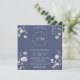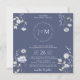 Elegant dusty blue watercolor wildflower floral Monogram Wedding invitation, square invitation.