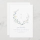 Elegant delicate watercolor wildflower wreath frames couple monogram, with custom your own event details in dusty blue. Pastel palettes of soft yellow, off white, sage green, dusty blue, and botanical greenery, Great floral save the date cards for modern rustic wedding, country garden wedding, and boho wedding in spring and summer.