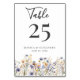 Dusty Blue Wildflowers Elegant Script Wedding Table Number