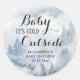Beautiful dusty blue winter misty forest watercolor painting. Baby it's cold outside lettered Baby Shower stickers. Customisable!