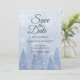 A "save the date" with a dreamy winter scene of fading pine trees and snowflakes in beautiful shades of dusty blue. Mesmerise your guests with this glorious snowy landscape. Also available is the matching wedding invitation and other wedding essentials.