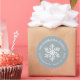 Affordable custom printed round return address stickers personalised with your family name and return address. This simple modern holiday design features a white snowflake on a light blue grey background. Use the design tools to choose any background colour, edit text fonts and colours or upload your own photos to design your own unique holiday return address labels, envelope seals or gift tag stickers.