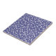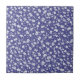 Tiny white seamless floral print on dark dusty blue ceramic decorative tile.
