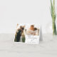 Boho script Thank you, photo note cards. 2 photo spaces on front. Template text lines inside with dusty blue and yellow botanical floral arrangement accent.