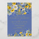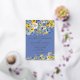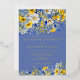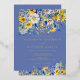 Bohemian romantic watercolor wildflowers design in cobalt and dusty blue with sunny bright yellows and whites. This wildflower watercolor design is perfectly suited for Spring or Summer weddings with a Semi-Formal to Casual-Chic vibe, ideal for Garden, Bohemian Chic, or Rustic settings that emphasize joyful, natural elegance and an atmosphere reminiscent of a sunny wildflower meadow.