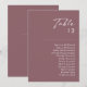 This Dusty Boho | Purple table number chart is perfect for your colourful rustic boho wedding. Its simple, unique modern design accompanied by a contemporary minimalist script and mauve purple colour palette gives this product a classic chic bohemian feel. Keep it as is, or choose to personalise it with artwork or graphics of your choice. You can also look to other products within this collection to bring your whole wedding together!