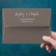 This elegant wedding envelope features a delicate floral ornamental design with flowers, birds and leaves on a dusty brown background. The text combines handwritten script and serif fonts for a stylish and modern look. Perfect for a winter or autumn fall wedding.