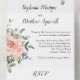 These all in one wedding invitations feature a modern watercolor floral design with dusty roses and eucalyptus leaf foliage. Personalise with your text. Other matching stationery and wedding reception products also available.