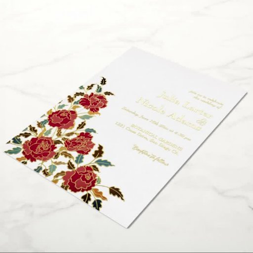 Dusty Elegant Golden Red Rose Flower Wedding Table Number