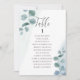 Individual table seating charts with elegant calligraphy, eucalyptus leaves and watercolor mist. Simple botanical design with watercolor foliage and greenery in dusty blue grey green. "Table" is hand lettered in elegant calligraphy and the table number is editable. Easy to create your own mini seating charts for each table - use the template to update the table number and guest list (click "customise further" if you need to adjust font size or line spacing).