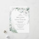 Modern and elegant wedding invite Design features a bouquet of watercolor greenery,