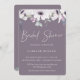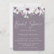 Elegant watercolor floral arrangements in dusty shades of violet, blush pink, creme, blue and green, bridal shower invitation. Customise text, font style, colour and size. Background colour, shown in dusty violet purple, can be customised as well.