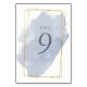 Dusty Gold table card with watercolor cloud and double gold rectangle border with elegant sans serif font for number and title