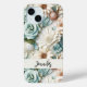 A dusty green and cream coloured flower pattern. Personalise and add your name. The name is written with a modern hand lettered style script.