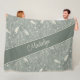 This cute boho style fleece blanket features a pattern of hand-drawn feathers, flowers and paislies in cream on a dusty green background with darker green accents - personalise with her name - by katz_d_zynes