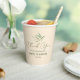 This stylish wedding paper cup has dusty green foliage and a beige craft paper texture. Customisable, elegant typography in dark green. It is a sophisticated and classy design that you can edit text, images, and fonts. This design evokes a simple, organic elegance.
