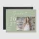 Yay! Your middle school, high school, college/university, tech school, or graduate program student did it and is graduating! Celebrate one of their life's precious moments and send out this graduation announcement magnetic card. The magnet features a simple, elegant modern minimalist style with beautiful calligraphy script on a dusty green background and the graduate's photo. Just customise and replace the text and photos in the personalisation box.