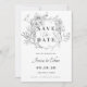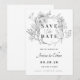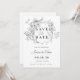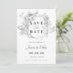 Minimalistic wedding invitation Save the Date card with grey floral & calligraphy.